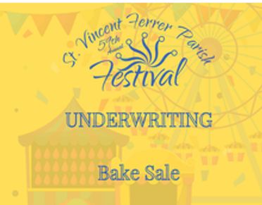 opportunity for our beloved Bake Sale of delicious homemade treats. Your Family Name will have a 3x6 Banner at the Festival along with recognition on our Social Media Platforms and Church Bulletin.