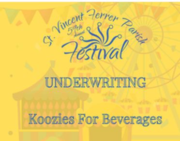 opportunity for Koozies for Beverages. Your Family Name will have a 3x6 Banner at the Festival along with recognition on our Social Media Platforms and Church Bulletin.