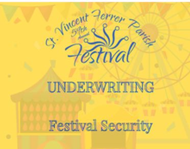 Help support our Parish with an underwriting opportunity for Festival Security. Your Family Name will have a 3x6 Banner at the Festival along with recognition on our Social Media Platforms and Church Bulletin